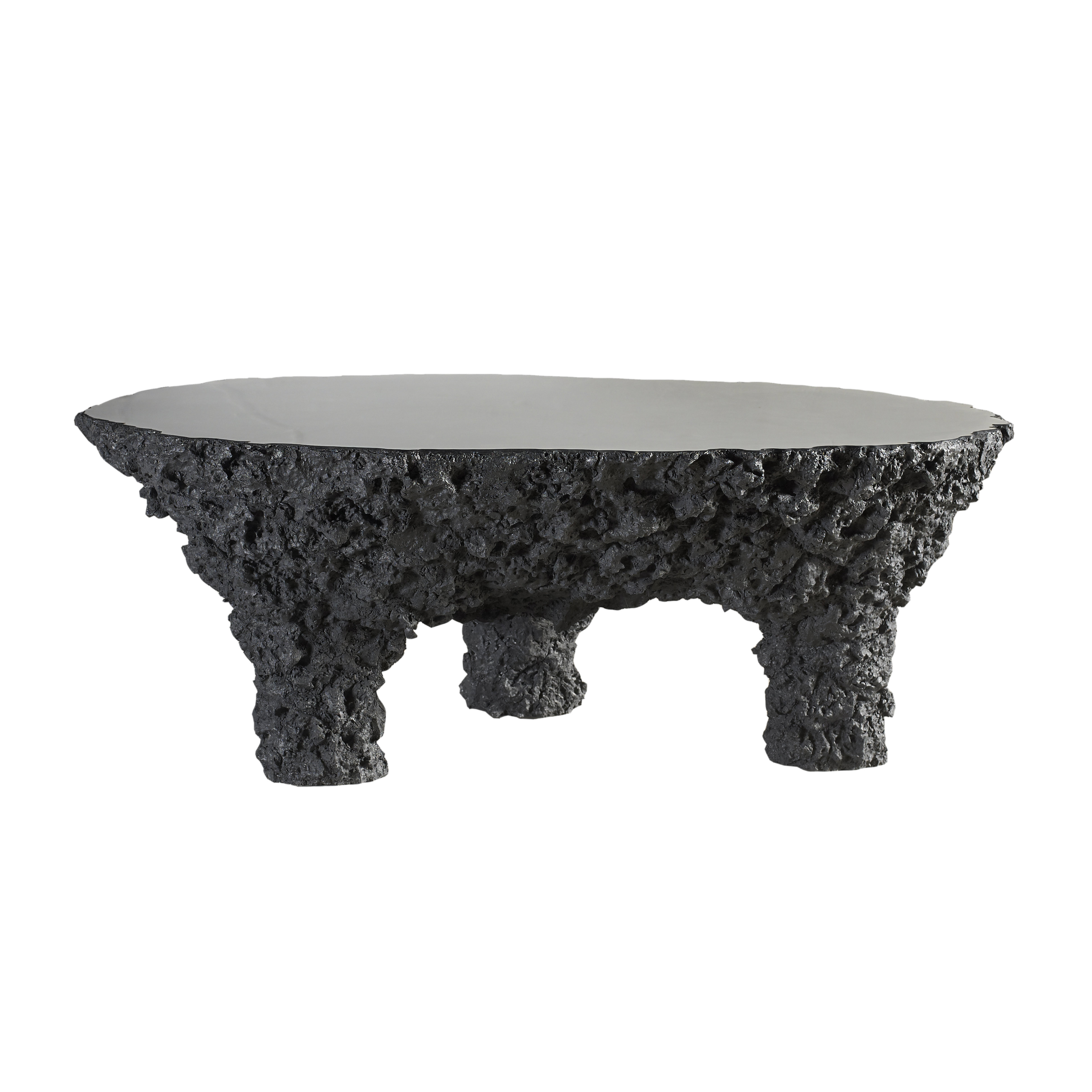 The grand canyon large slate gray coffee table is made of composite that has been molded to look like a piece of aged stone that nature created over ions, then covered in a warm slate gray finish.