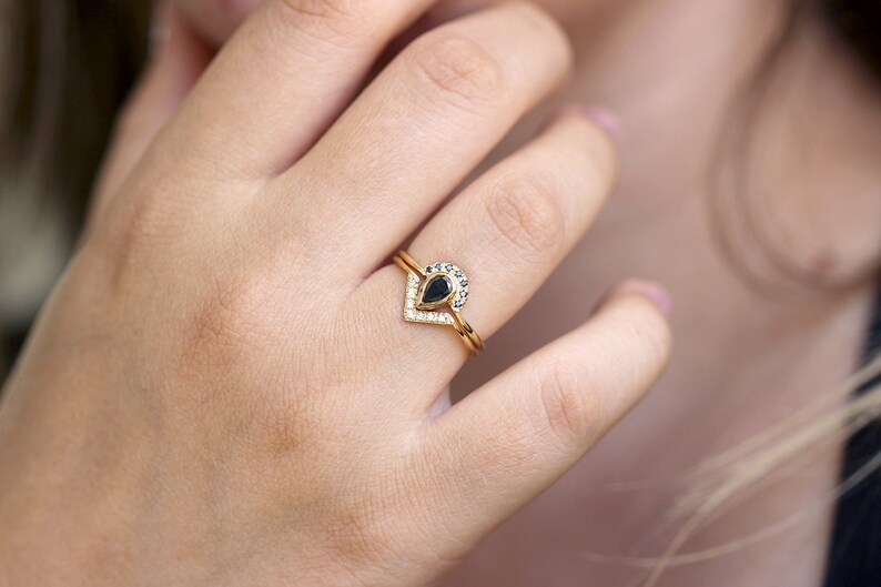 Whether you prefer the unusual, facinating natural black diamonds with an inner landscape, or the solid black diamond, we'll source your perfect stone. Only 1 available and it's in 4 people's carts. 2.28ct cushion black diamond halo engagement ring set 14k black gold. Front jewelers' black diamonds are cut and polished to perfection, then set into our 14kt & 18kt white, yellow and black gold as well as platinum settings to create these unique black diamond engagement rings. Anna sheffield bea marquise black diamond ring in 14k rose gold, $5,600, annasheffield.com. 1.3ct pear cut black quartz wedding ring, black gemstone engagement ring,gift for her,natural black rutilated quartz promise ring solid gold. Get it as soon as fri, jul 2 +2 colors. Gemstone engagement rings are unique and captivating. To add a little bit of edge to your engagement, you can also consider getting a black diamond engagement ring for your significant other. Fill out the form below to get started. Some gemstones are too low on the mohs hardness scale to survive everyday wear. People tend to get creative too, throwing in a new style or pattern when it comes to rings. 5 out of 5 stars.
