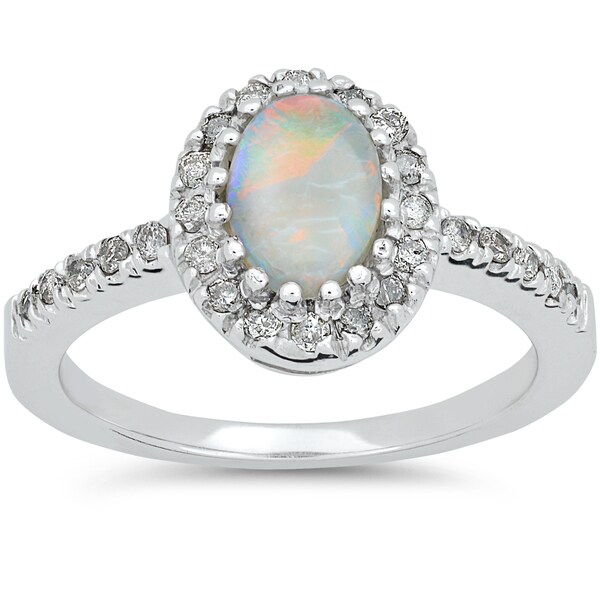 White Gold Opal And Diamond Engagement Ring / Vintage 14k Gold Opal & Diamond Engagement Ring by ... - 10k white gold aa opal white diamond 5 stone ring gift ct 0.2 h color i3 clarity.
