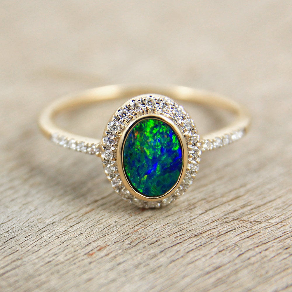 Amazing unique one of a kind australian opals. Solid 18k yellow gold solid australia opal & 10 diamond dress/engagement ring (15538). Your future wife will be speechless if you propose with this stunning. Round cuts and princess cuts remain a popular choice, with 0.25. Shop opal engagement rings from kay, your jewelry store for engagement rings.